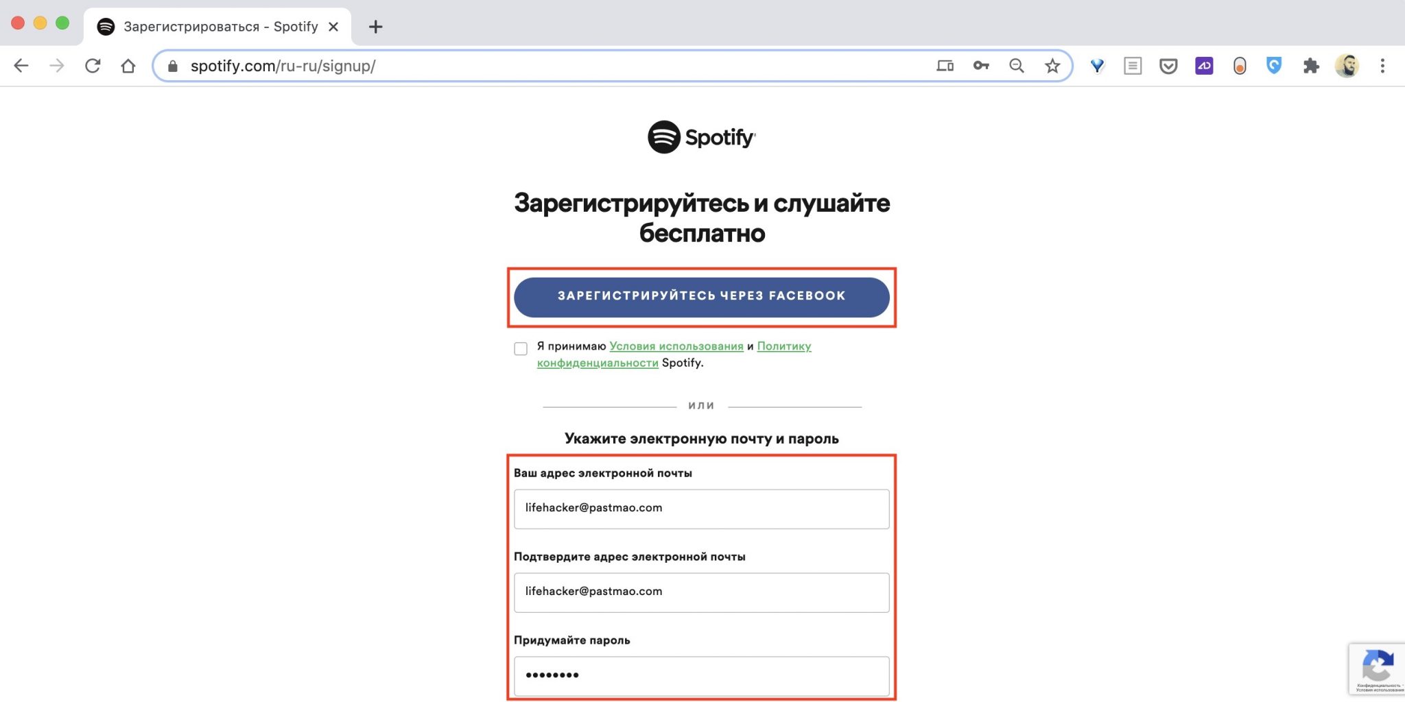Создать аккаунт spotify