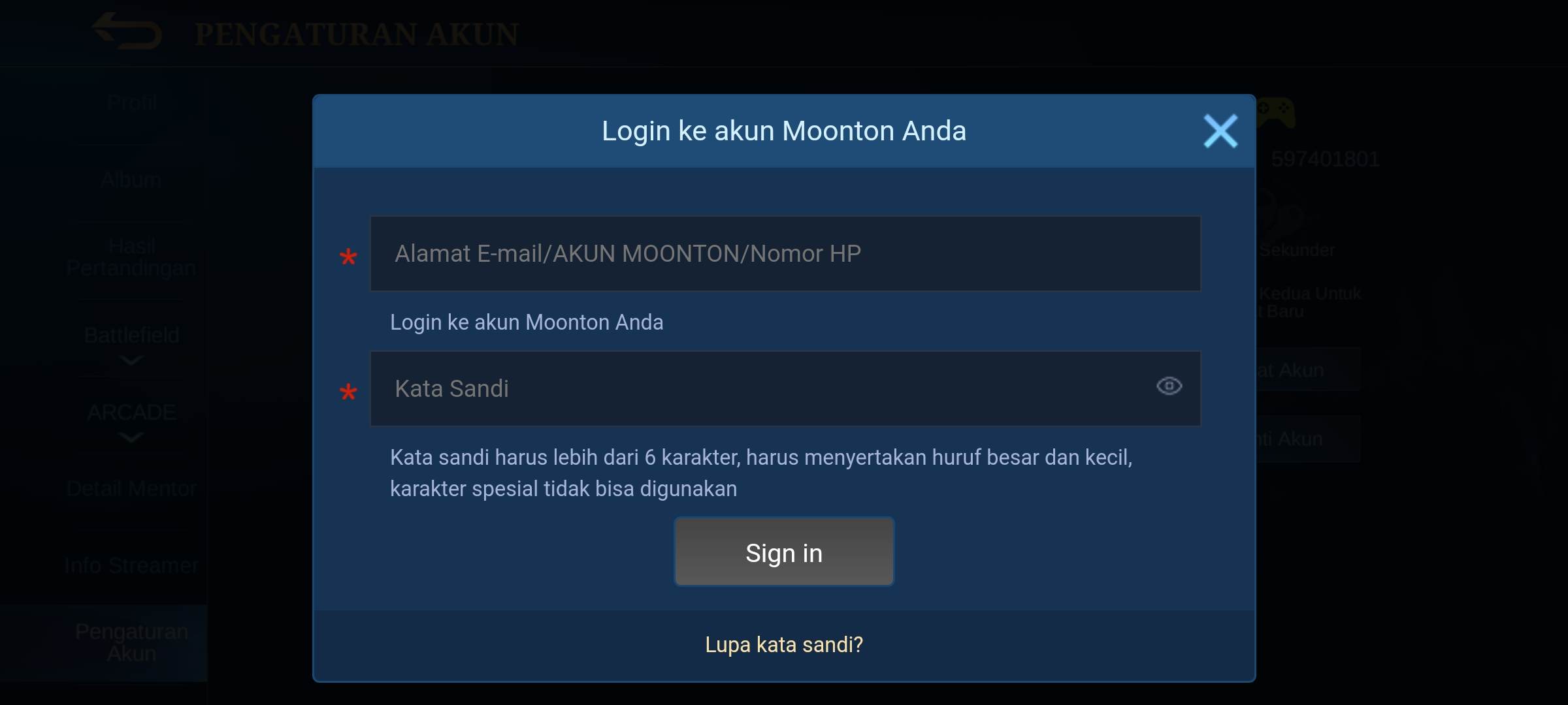 Создать новый аккаунт moonton