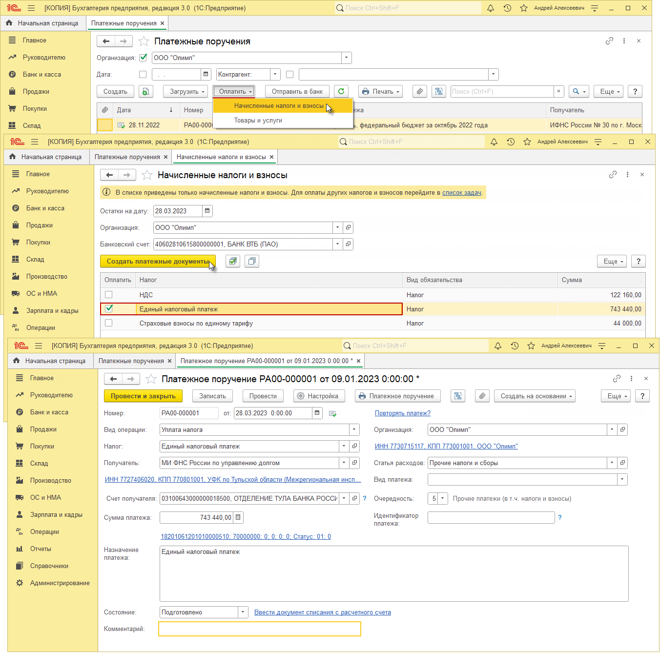 Создать платежки уплату налогов