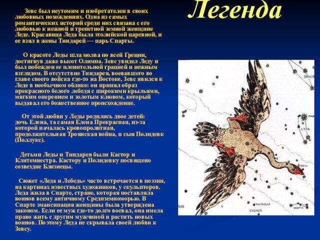 Созвездие лебедь легенда
