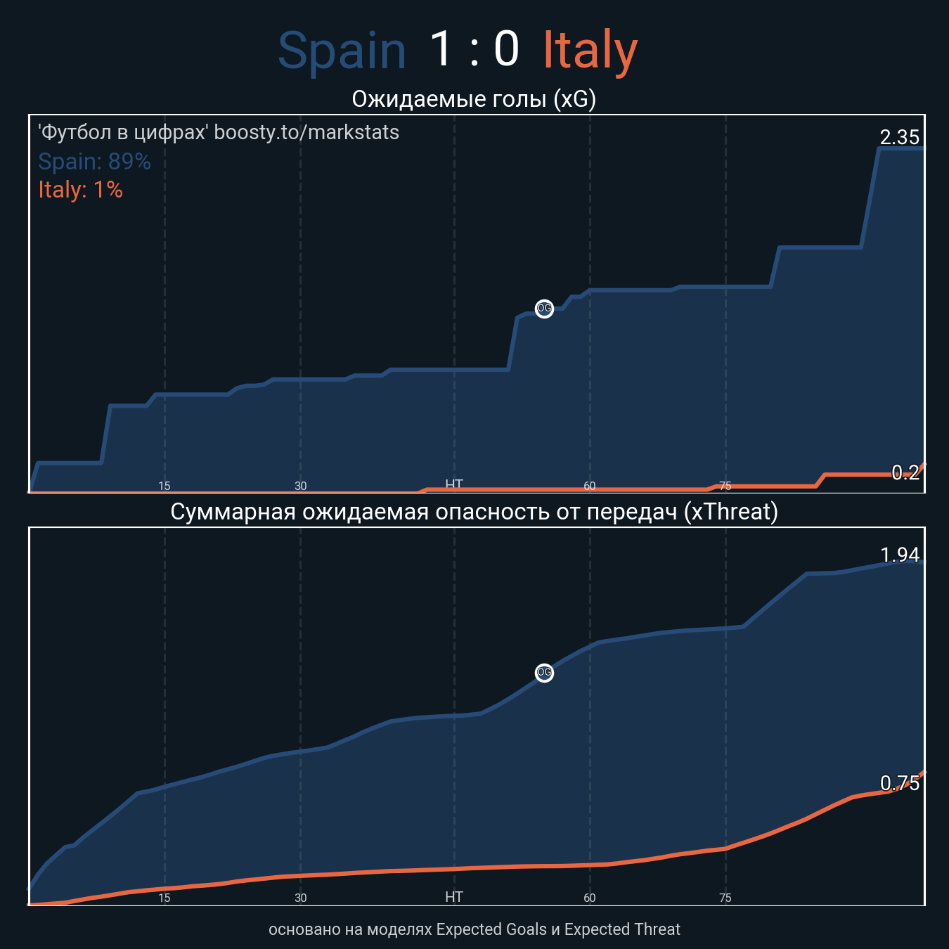 xThreat без учета угловых: 1.79 - 0.64