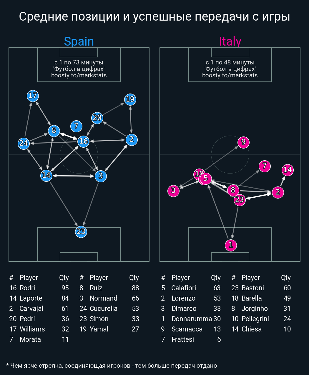 93 успешных передач из 95 попыток (1 под удар, 5 с продвижением, 11 на трети соперника)