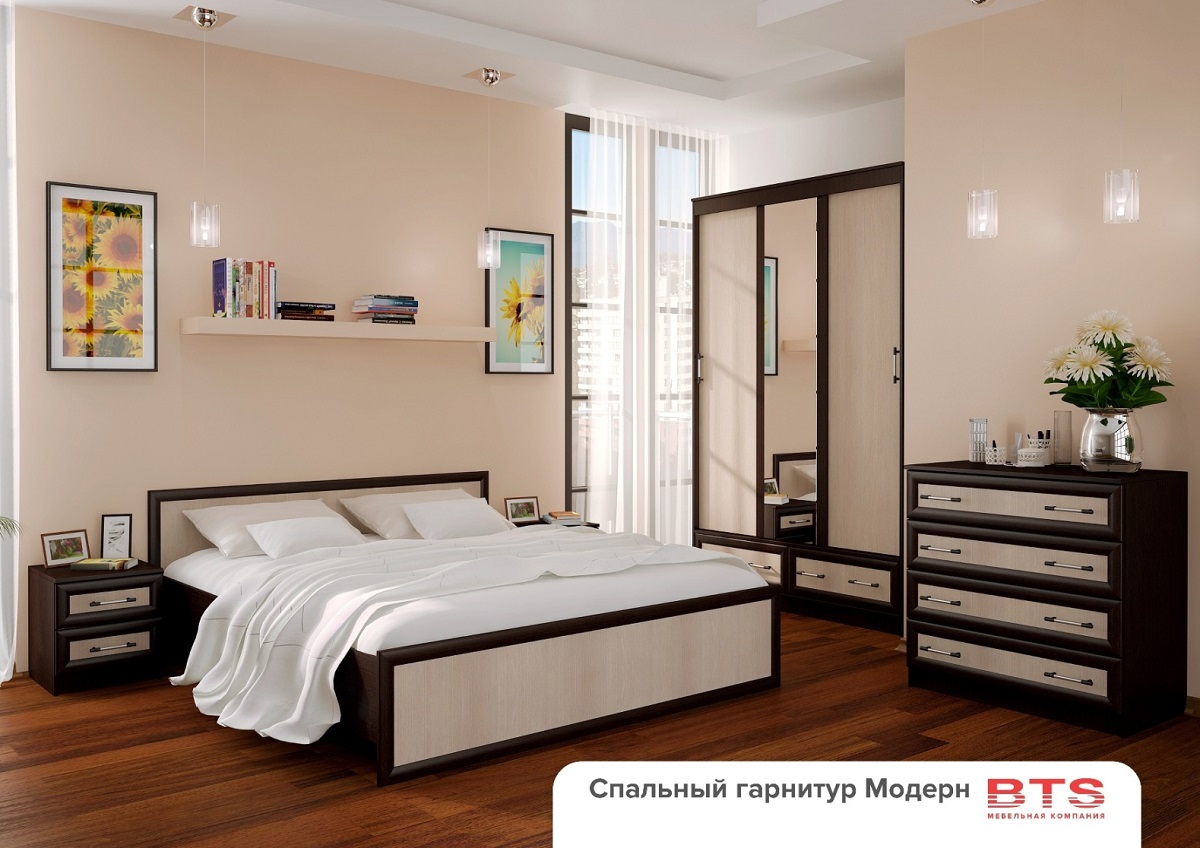 Спальня в стиле модерн, как правило, использует стандартный набор, который состоит из кровати, 1-2 прикроватных тумб, зеркала, комода или шкафа . Спальня «Омега» является ярким представителем . . .