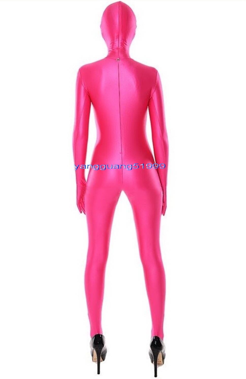 Spandex Angel - Shiny boobs pink catsuit 144 photos