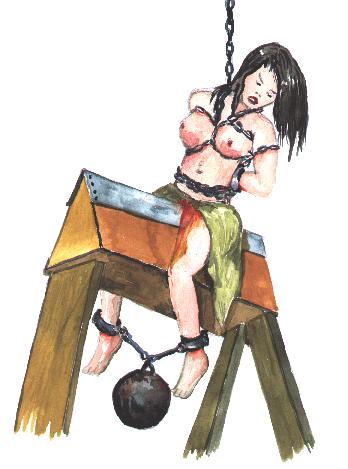 One of the torture devices during the Spanish Inquisition, this is probably one of the most gruesome of them all. The victim is put astride, naked, on a donkey-like apparatus, which is actually a vertical wooden board with a sharp V-wedge on top of it. After that, the torturer would add varying weights to the victim's feet until finally the wedge sliced through the victim's body.