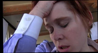 Concupiscent golden-haired gets on her knees to jerk off, suck and fuck big white penis