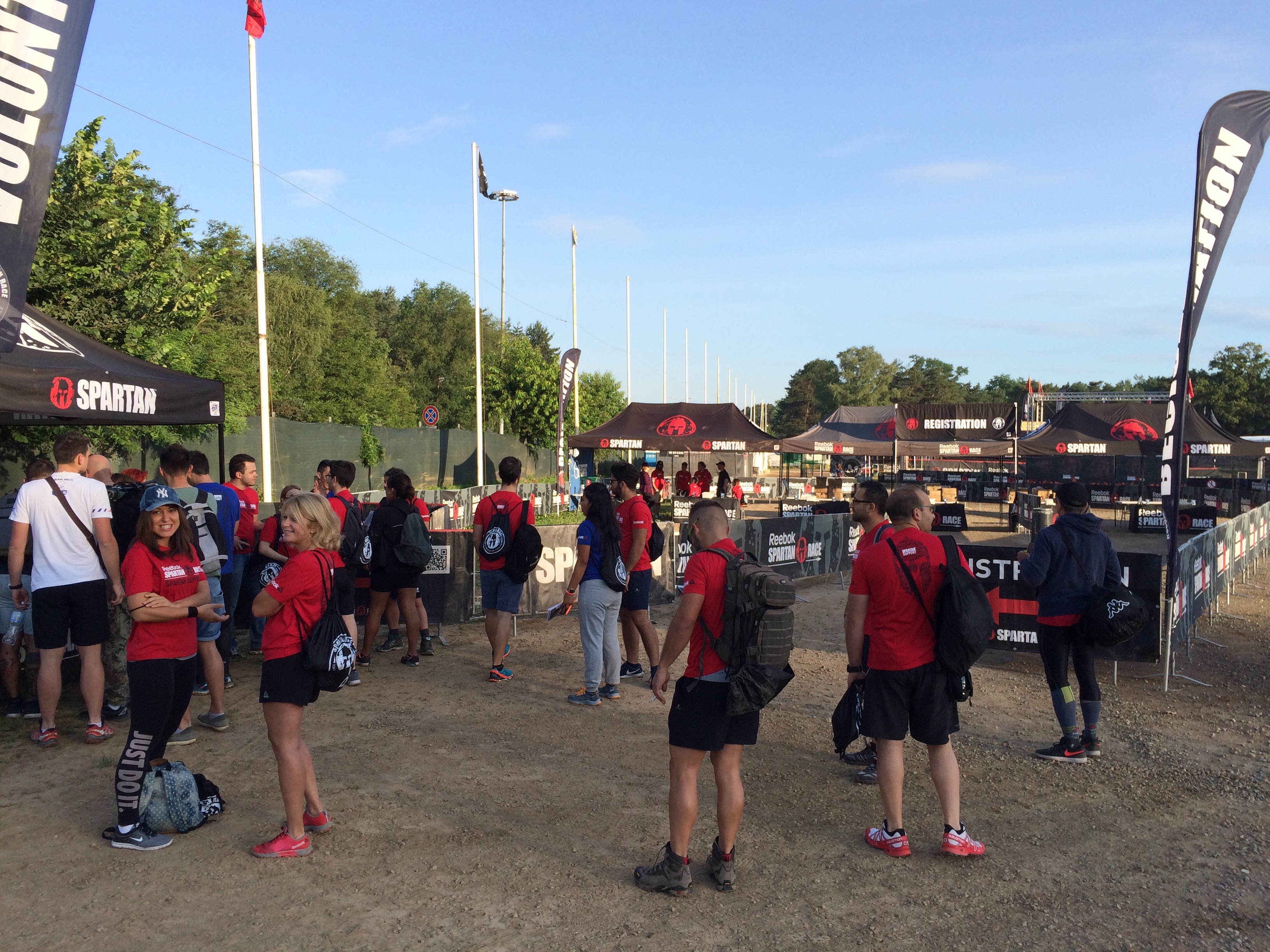 У входа на территорию Спартана нас встретил охранник, который удивился, что нас по дороге не забрала полиция. Внутри нас и других волонтеров ждал мешок с красной футболкой, водой и бананом.