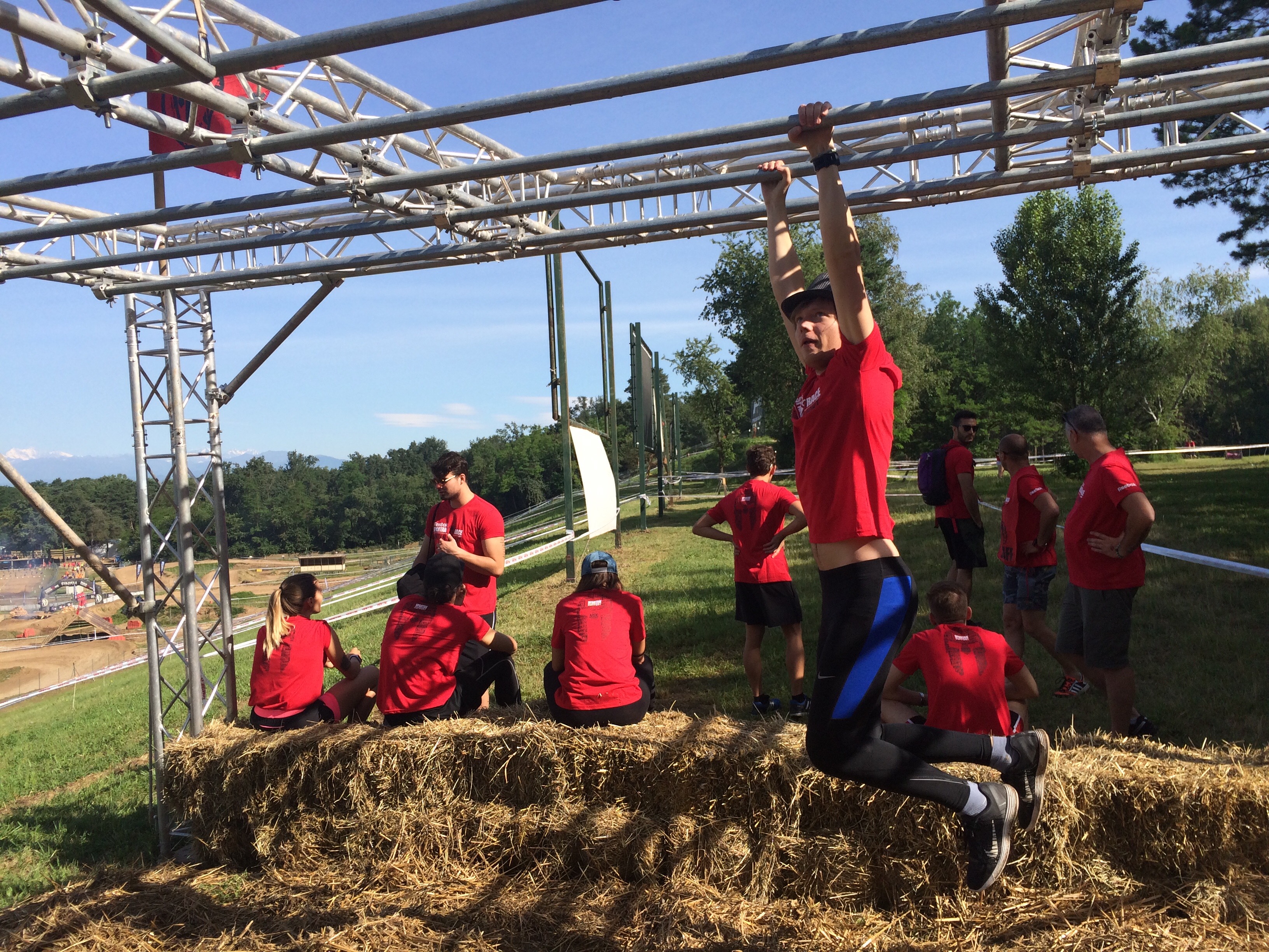 С десяти утра до половины шестого вечера спартанцы лезли по нашему манкей рингу не переставая. Несколько раз нам привозили воду и бутеры, несколько раз мы менялись между собой на позициях. По итогу дня у нас была одна девушка, которая упала совсем неудачно и сильно повредила ногу, несколько участников с повреждениями полегче, тысяча стертых в хлам ладоней и миллион берпис. А у меня ещё руки цвета футболки и немного разбитый айфон.