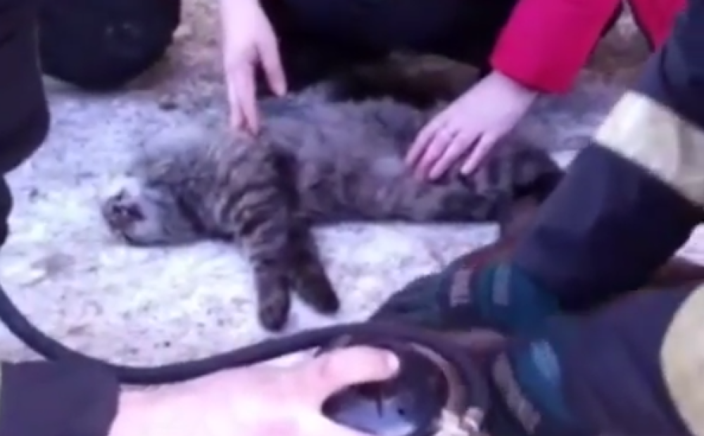 Спасают котенка видео