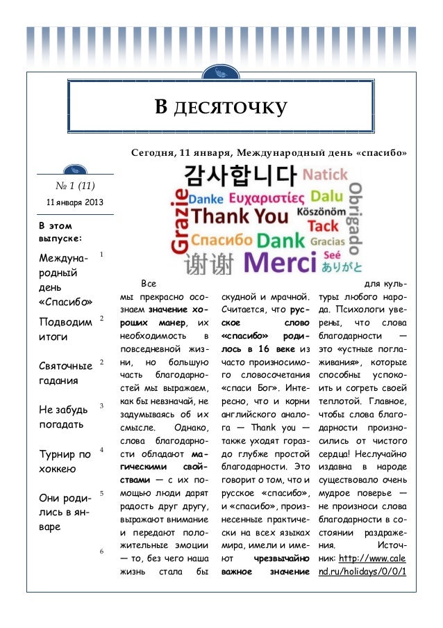 Международный Всемирный День Спасибо . 11 января .