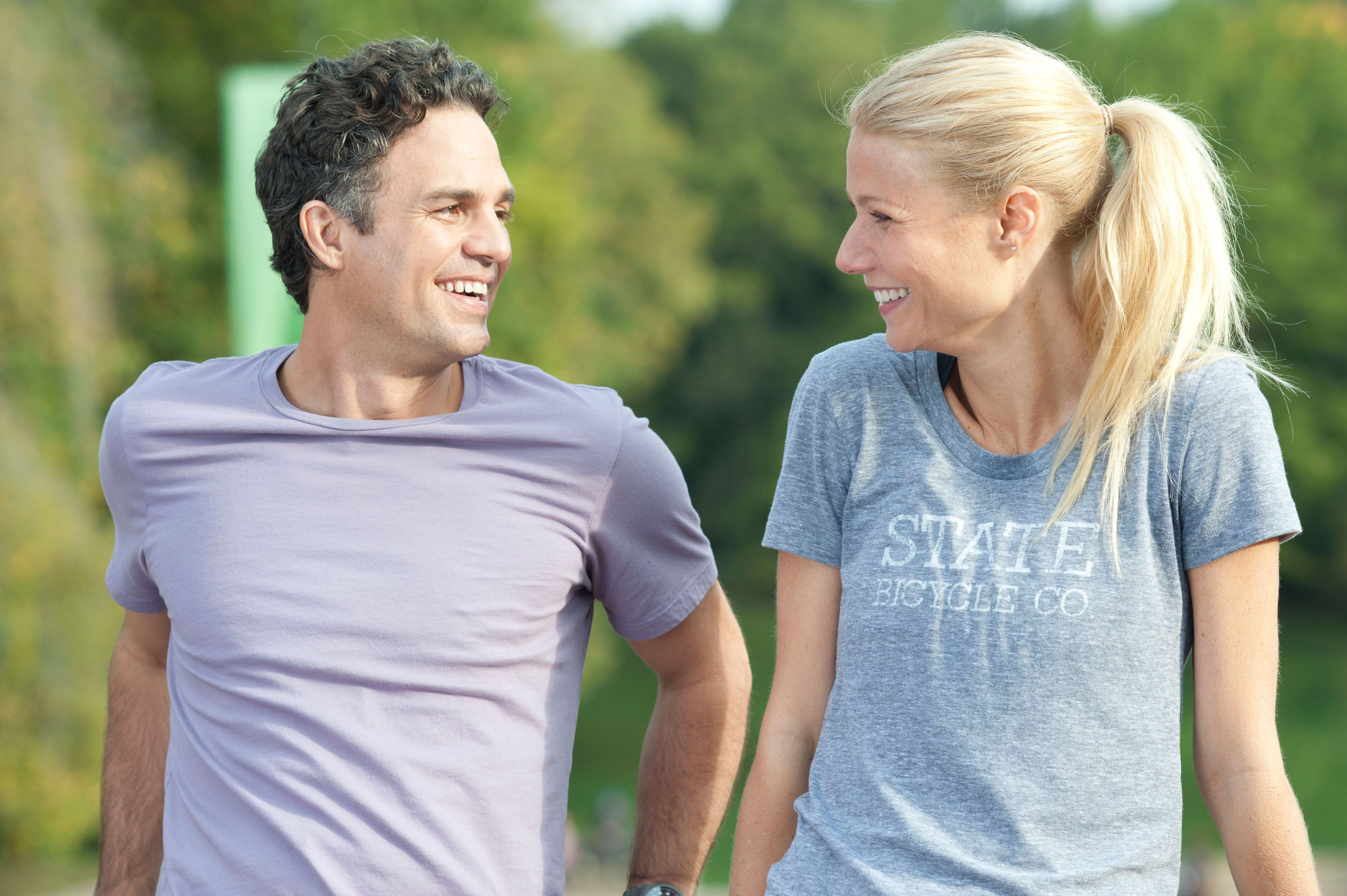 Когда Адам и Фиби встречаются в парке, Гвинет Пэлтроу запинается на своей фразе про тренировки к триатлону, а затем на секунду смотрит в камеру и вертит головой, давая понять режиссеру, что...
