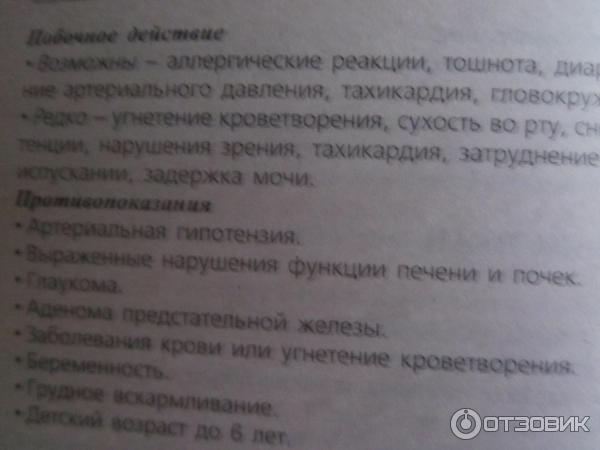 Это может быть тошнота, головокружение и повышение артериального давления . При длительном использовании препарата увеличиваются риски возникновения сбоев в мочевыделительной и кроветворно системе . Передозировка лекарственного средства может спровоцировать опасные аллергические реакции .