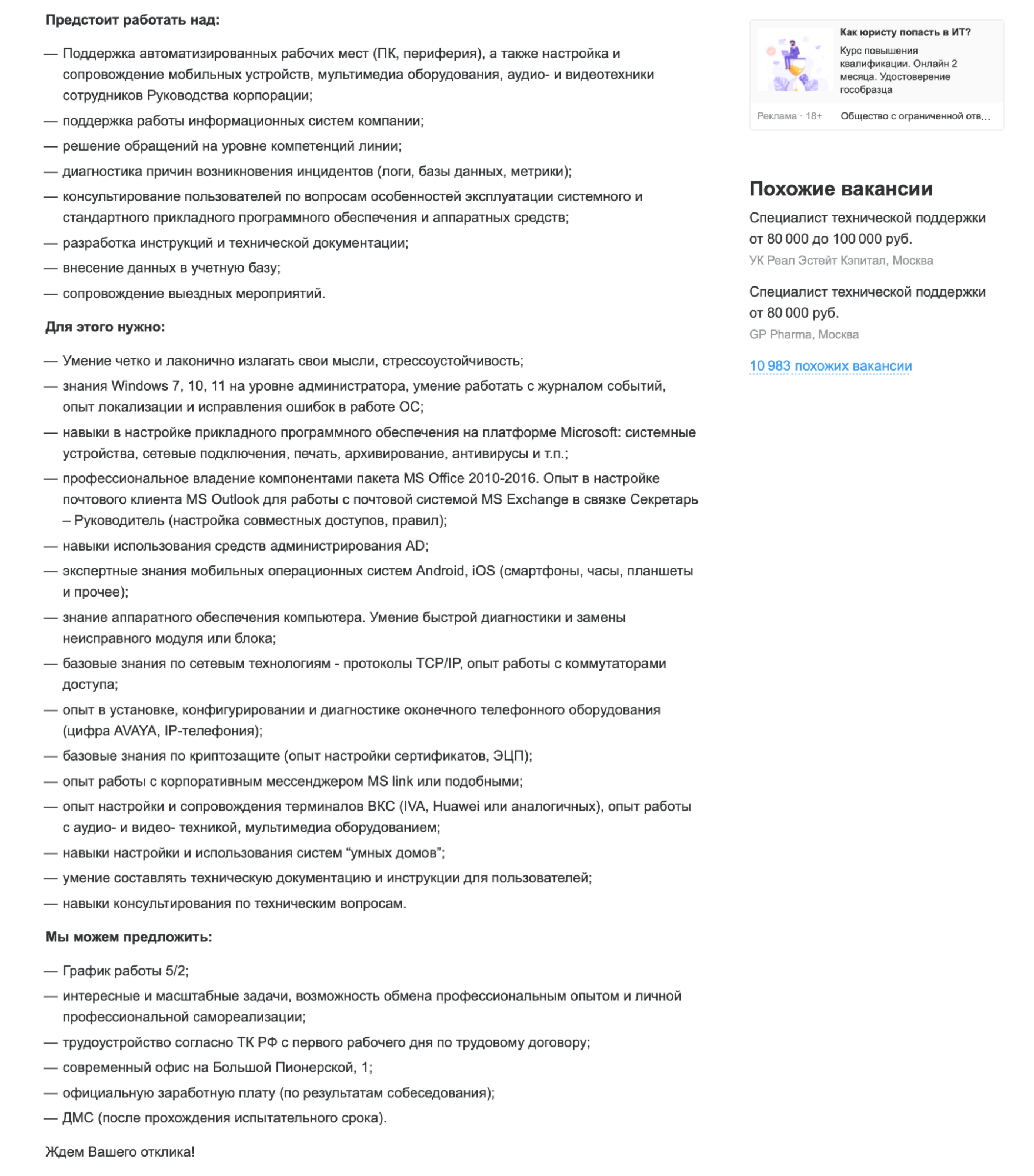 Специалист внутренней поддержки 109 фото