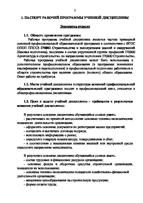 Специальность экономика дисциплины