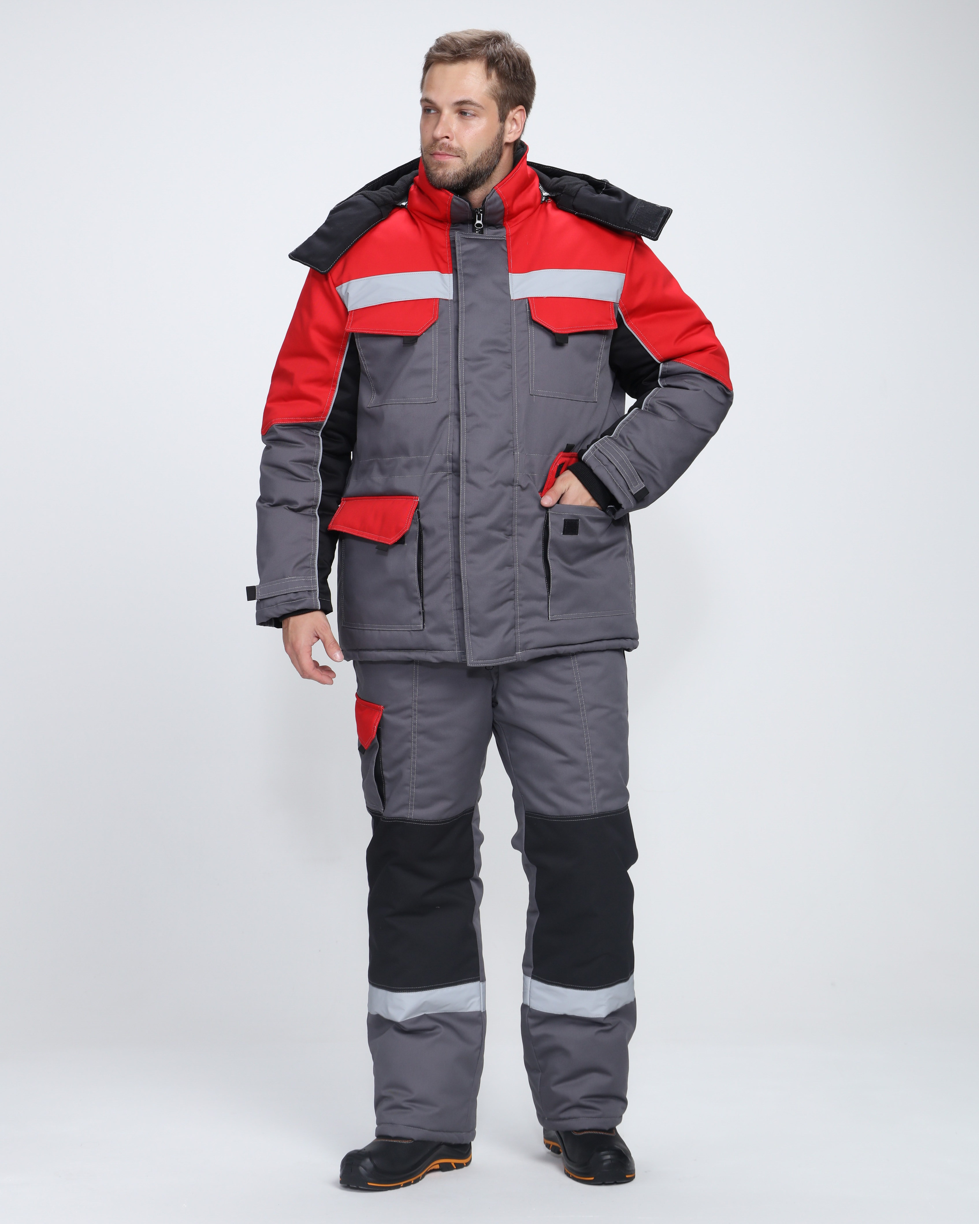 Спецодежда серо красная 84 фотографий