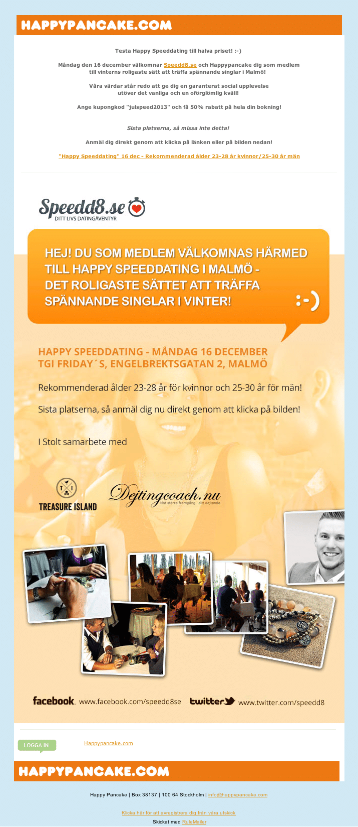 Bli medlem helt gratis på en av Sveriges största dejtingsajter . Information om cookies . HappyPancakes webbplats använder cookies för att anpassa och personalisera din upplevelse, samt för statistik och analys .