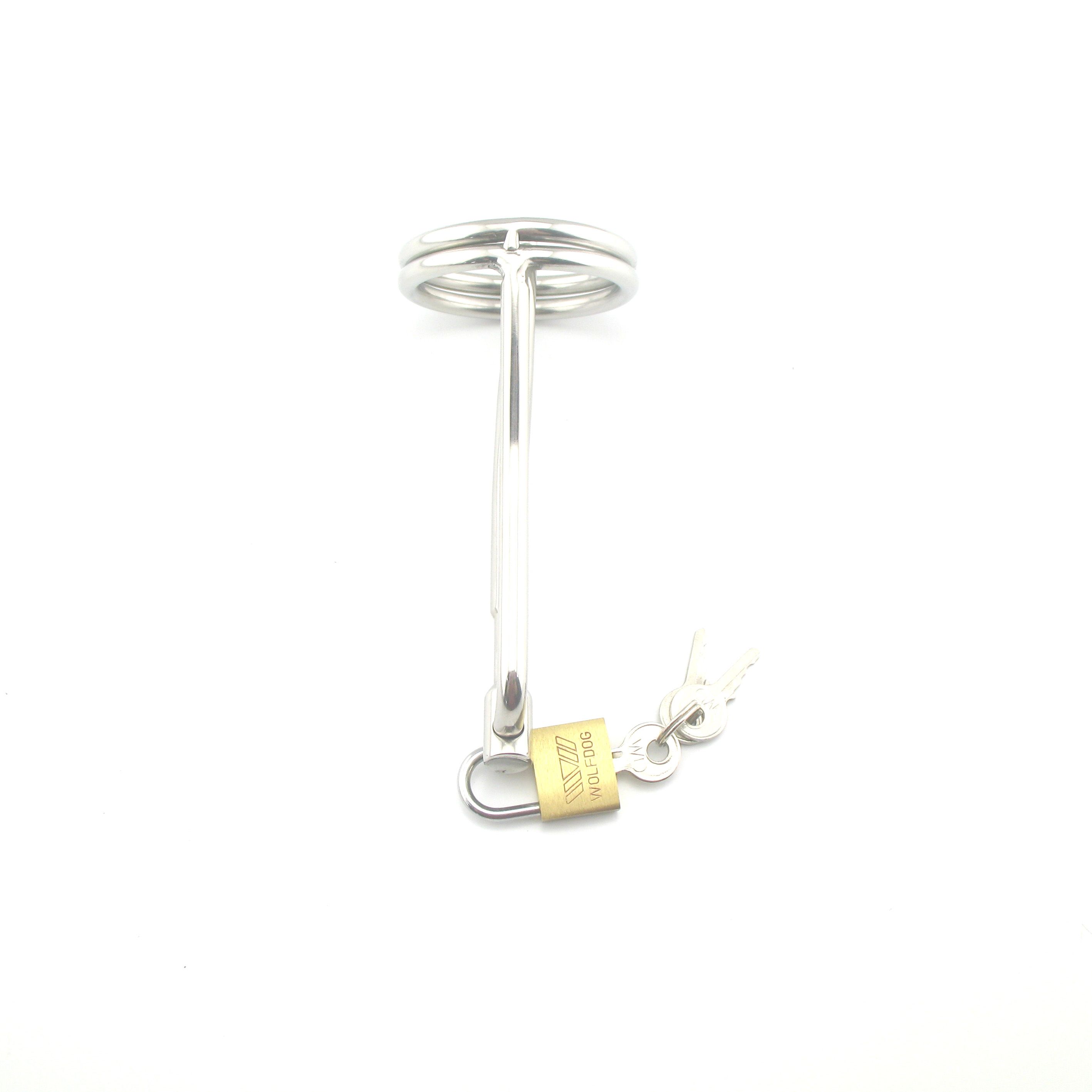 I'm sure none of you all actually thought it was a real chastity device though, eh . Anyway, this toy is a combination of two products in one . It's a head ring that attaches to a 'sperm stopper', which is a small stainless steel ball bearing on the end of a tiny steel tube .