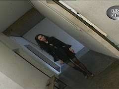 Brünettes Luder zieht blank beim Shooting