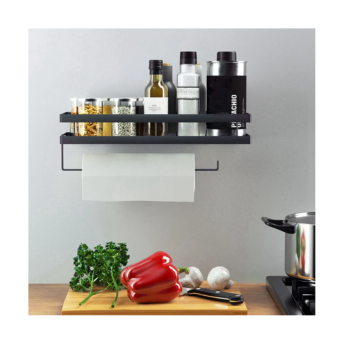 "Spice Rack, Hanging Spice Rack with Kitchen Roll Holder and 4 Hooks, Kitchen Organizer Drawer, Kitchen Utensil Holder" * Buy Now With Free Shipping Just For $25