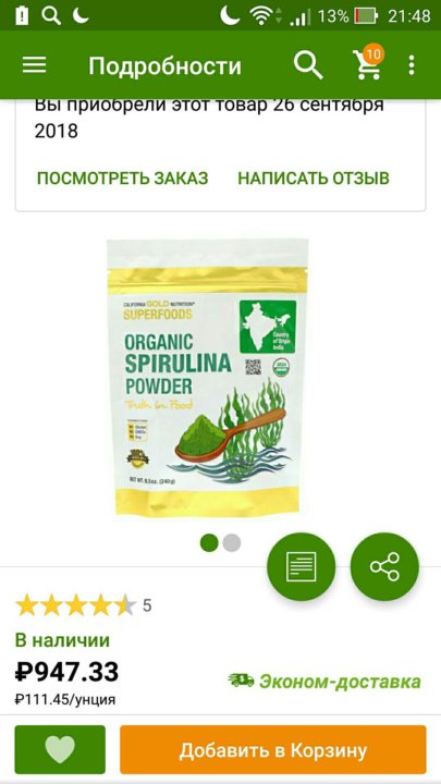 БАД California Gold Nutrition Organic Spirulina Спирулина . . .