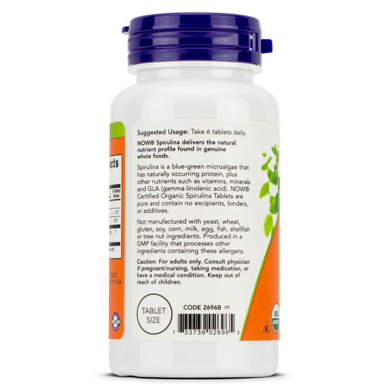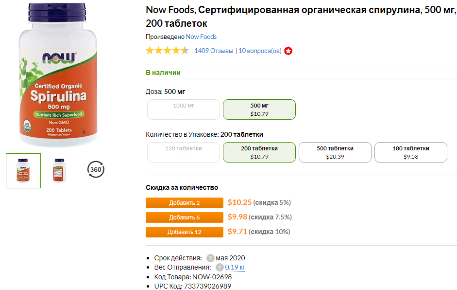 Обзор и отзывы на Now Foods Сертифицированная органическая спирулина . Польза и вред, как принимать . Большая пластиковая банка на 500 таблеток . В последний раз по скидке обошла в 1,285 рублей . Раньше покупала дороже, даже под 2 .000 рублей выходила, но эта добавка того стоит . Состав сертифицированная органическая спирулина Нау Фудс от Now Foods