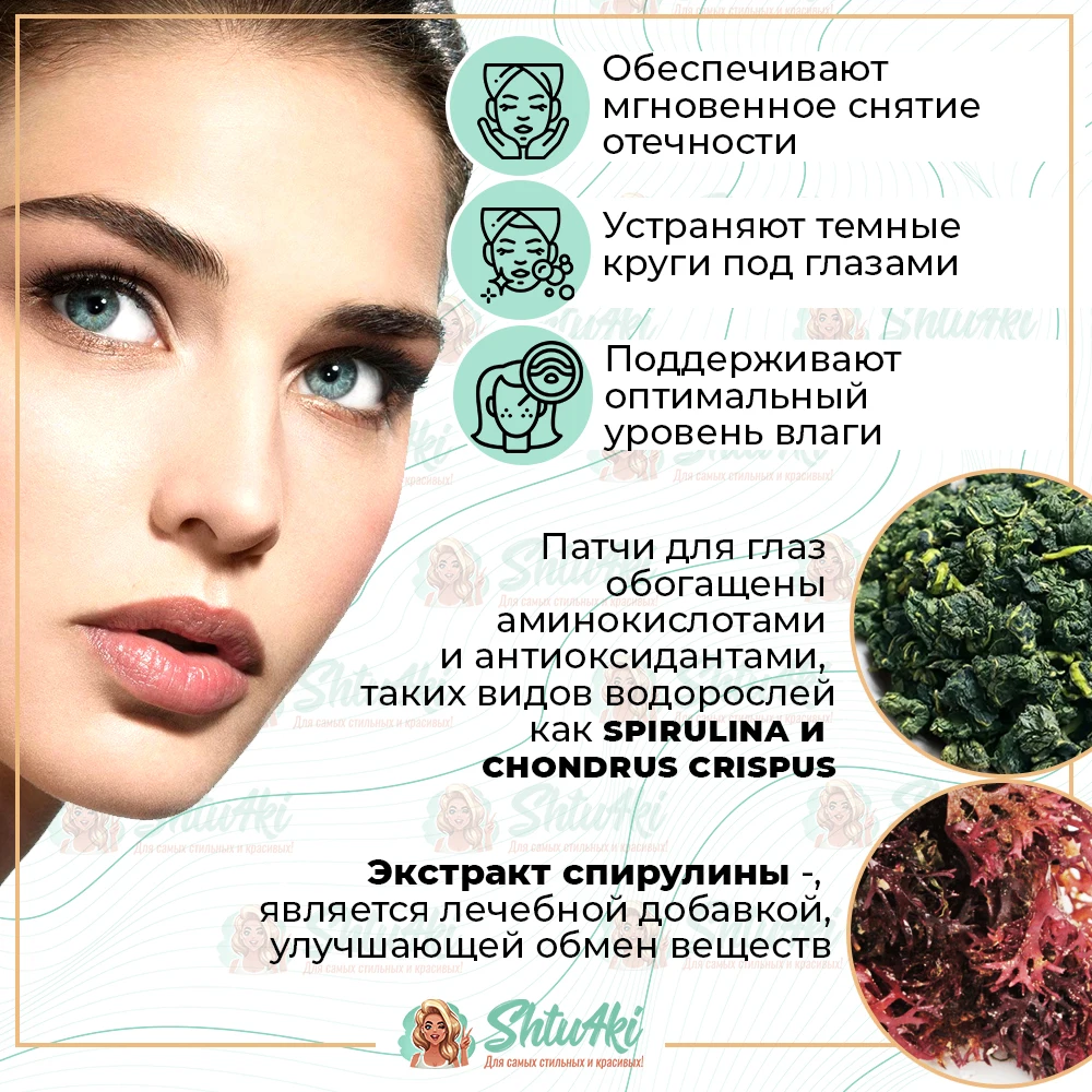 Патчи для глаз с экстрактом спирулина и водорослями от морщин и темных кругов/ патчи под глаза антивозрастные , увлажняющие для кожи вокруг глаз - характеристики, фото и отзывы покупателей .