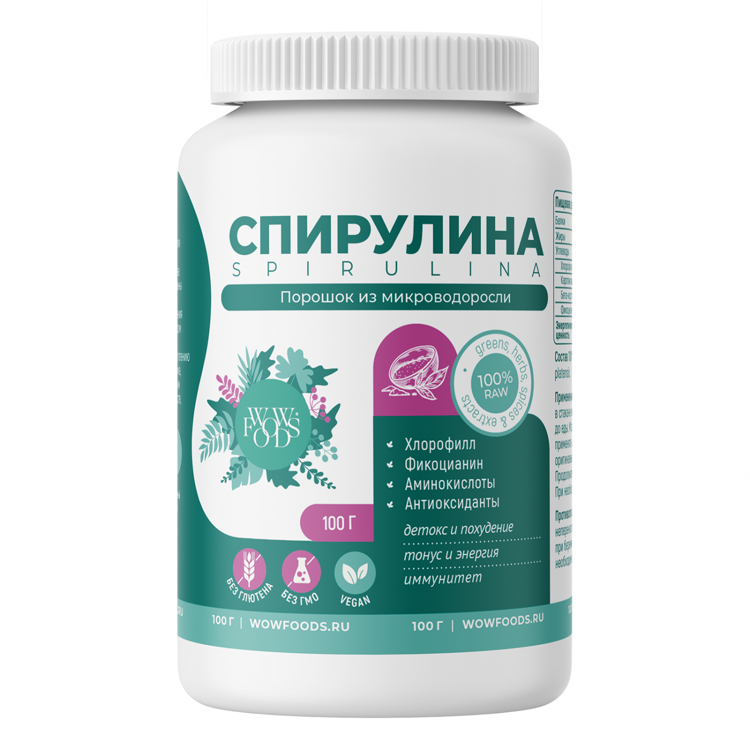 Спирулина Это тонкие нитевидные водоросли сине-зеленого цвета, которые продаются в виде порошка . В спирулине много белка, витаминов группы В, А, РР, минералов и фолиевой кислоты, поэтому ее часто называют суперфудом . В составе сушеной спирулины 60% белка, то есть больше, чем в мясе, фасоли, горохе, нуте, бобах .