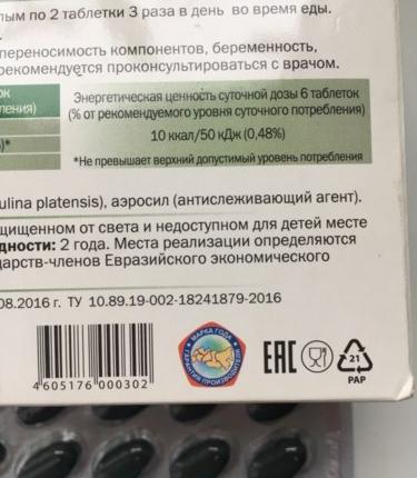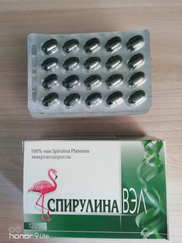 Внутри шесть блистеров, в каждом по двадцать таблеток . Также имеется инструкция .спирулина отзывы Описание производителя:Спирулина ВЭЛ - биологически активная добавка к пище - содержит микроводоросль Спирулины Платенсис, которая известна во всем мире как природное средство для укрепления иммунитета . Дополнительный . . .читать ещё irecommend .ru