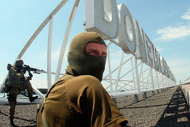 Фото: Мария Турченкова . . . приезда сепаратистов и разоружения солдат Вооруженных сил Украины конвой был отпущен . 16 апреля 2014 года . . . . полкилометра от аэропорта Донецка, где с конца мая 2014-го . . .