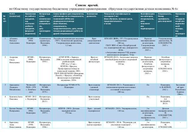Список Врачей Фото