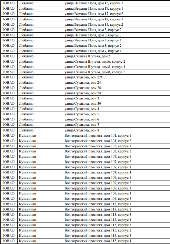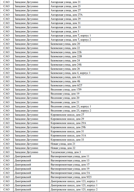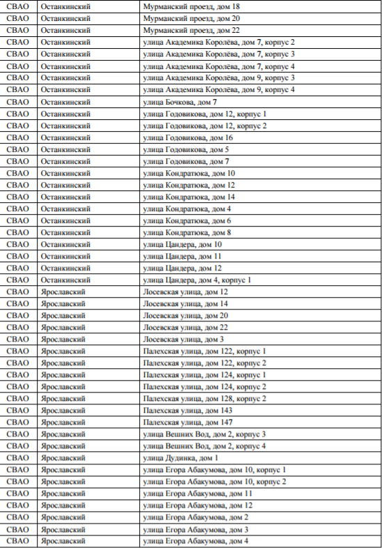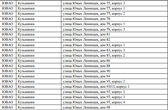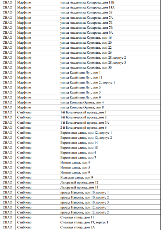 Список домов по программе реновация
