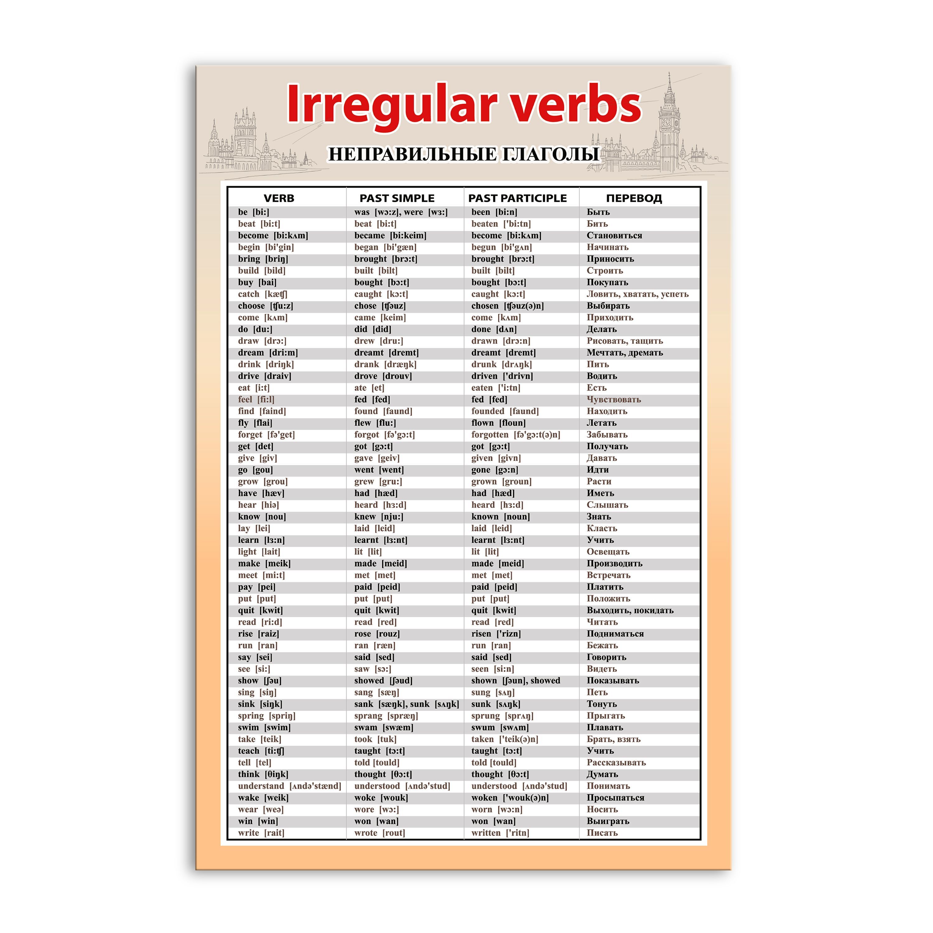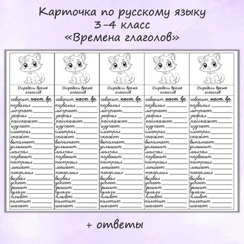 Список глаголов для 4 класса