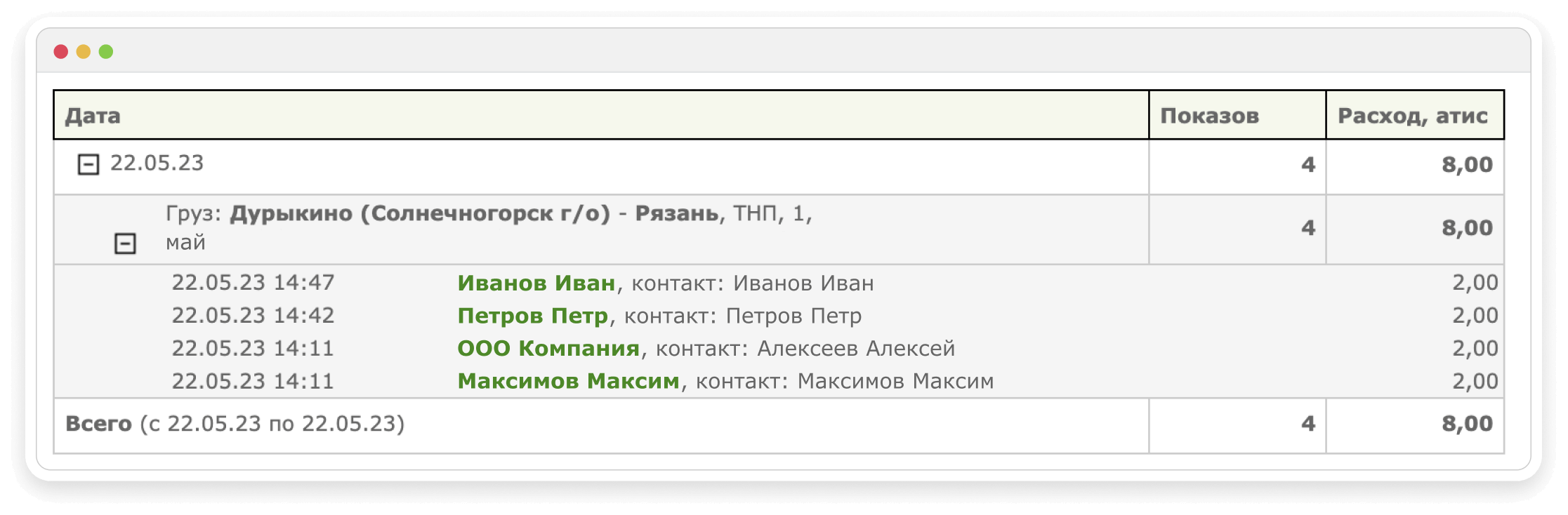Список грузоперевозчиков