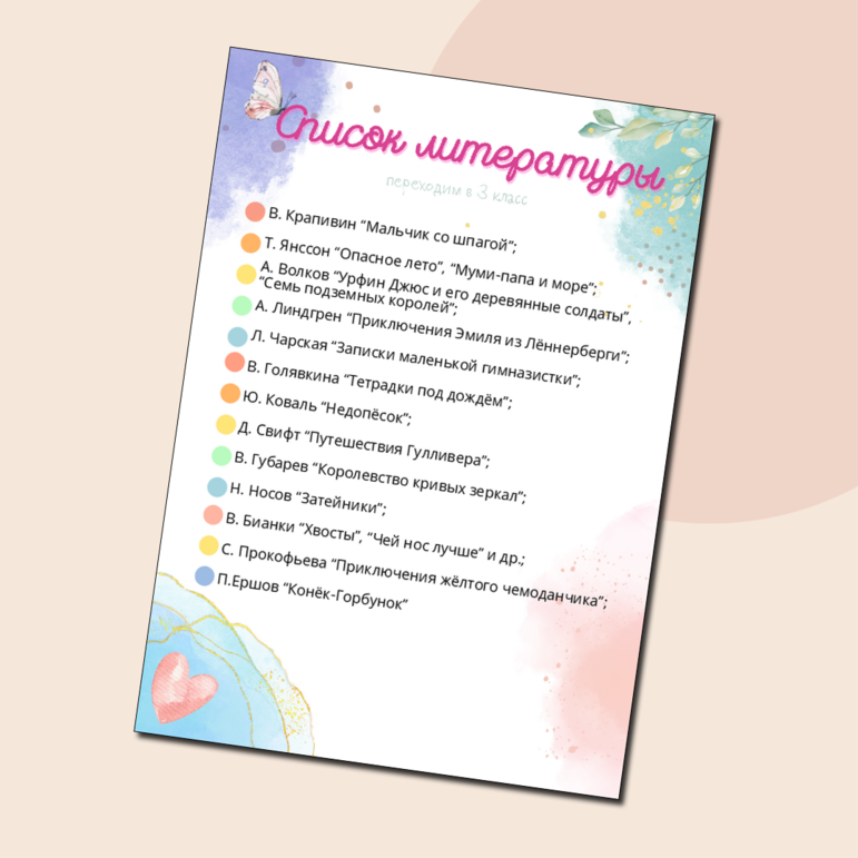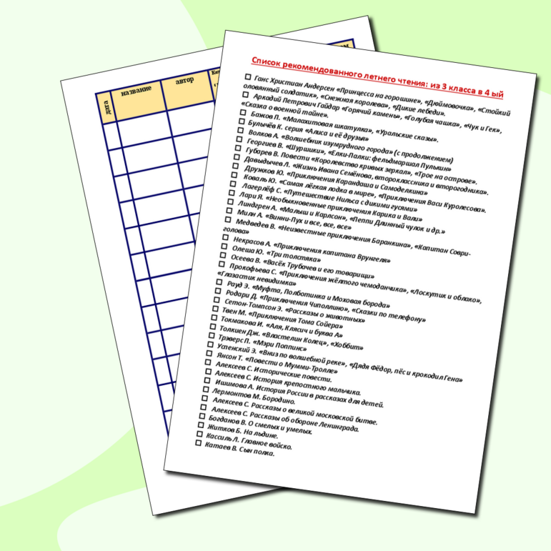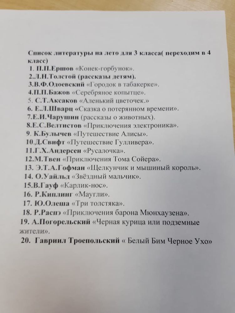 Список летней литературы для 3
