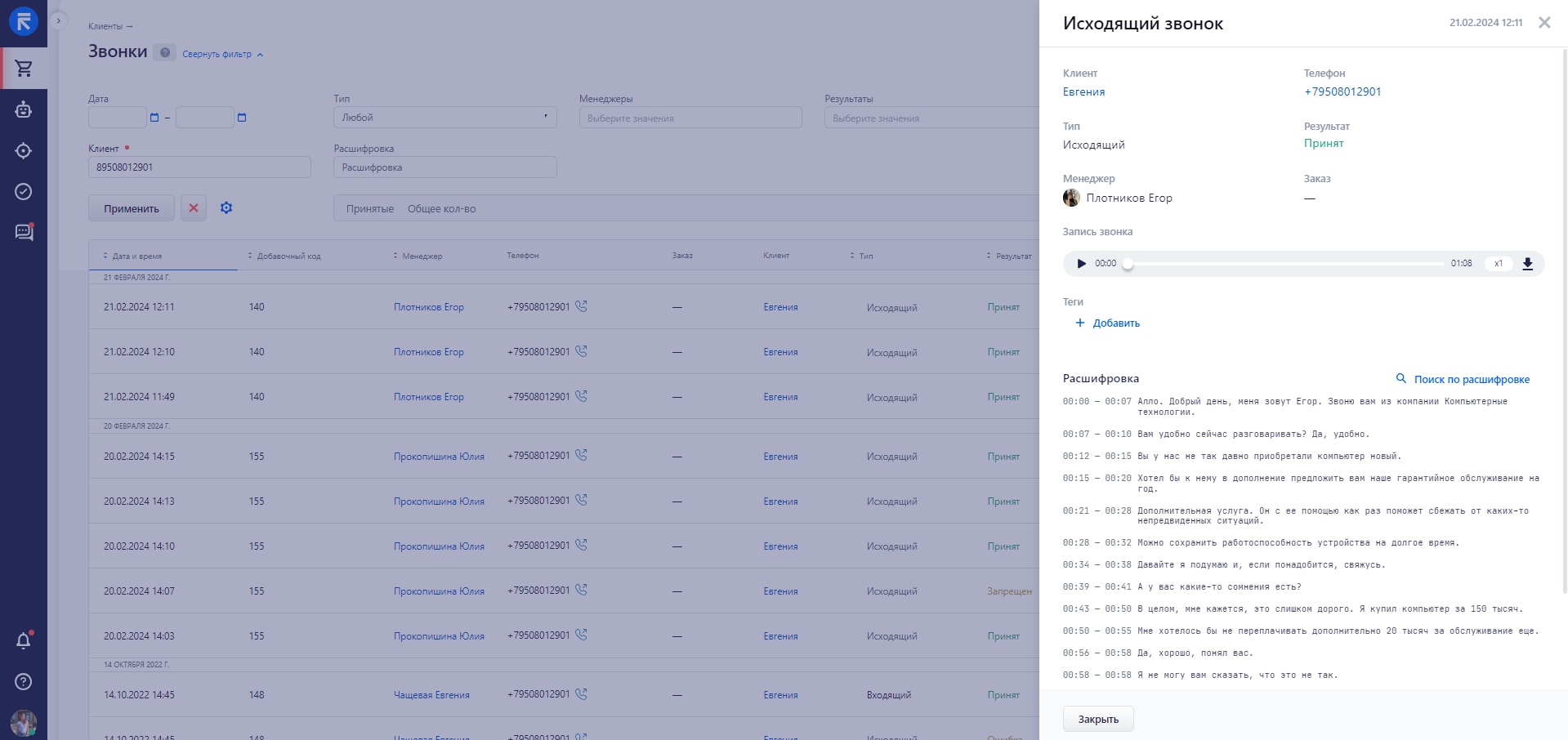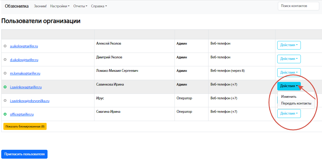 Список обзвона
