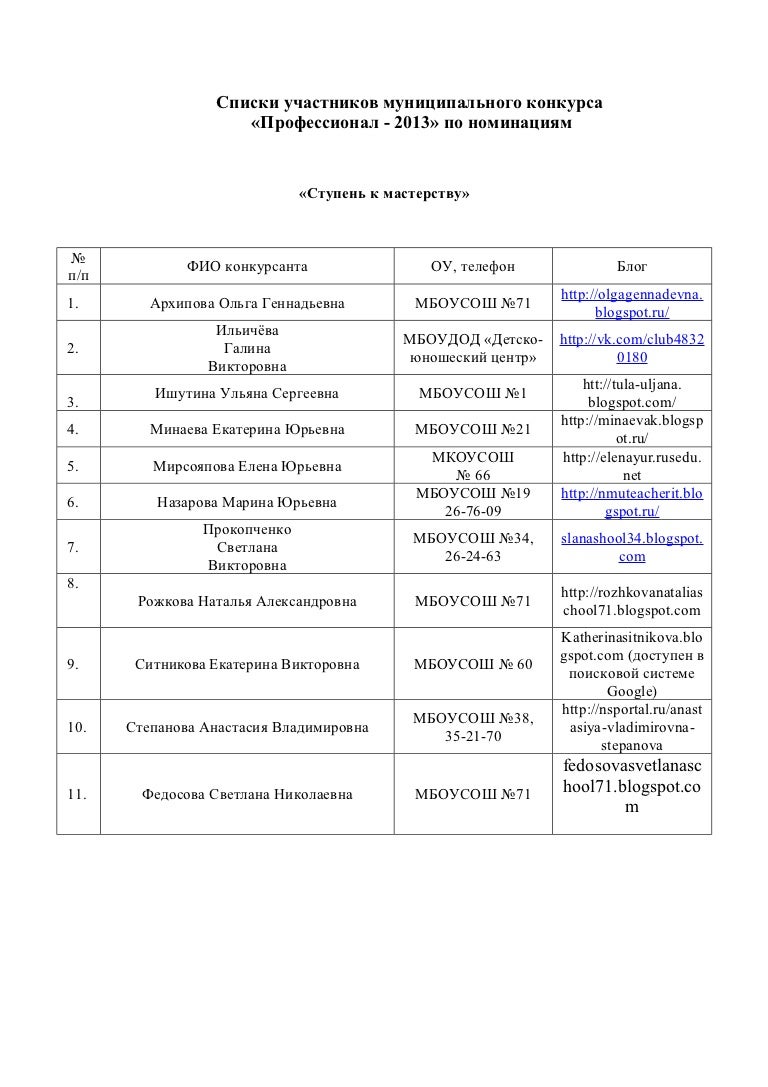 Список официальных конкурсов 114 фотографий
