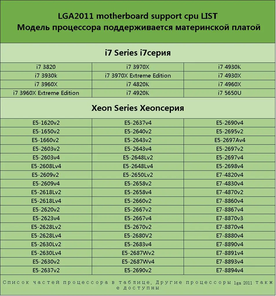 Список процессоров xeon 2011