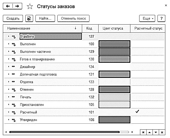Список статусов заказа