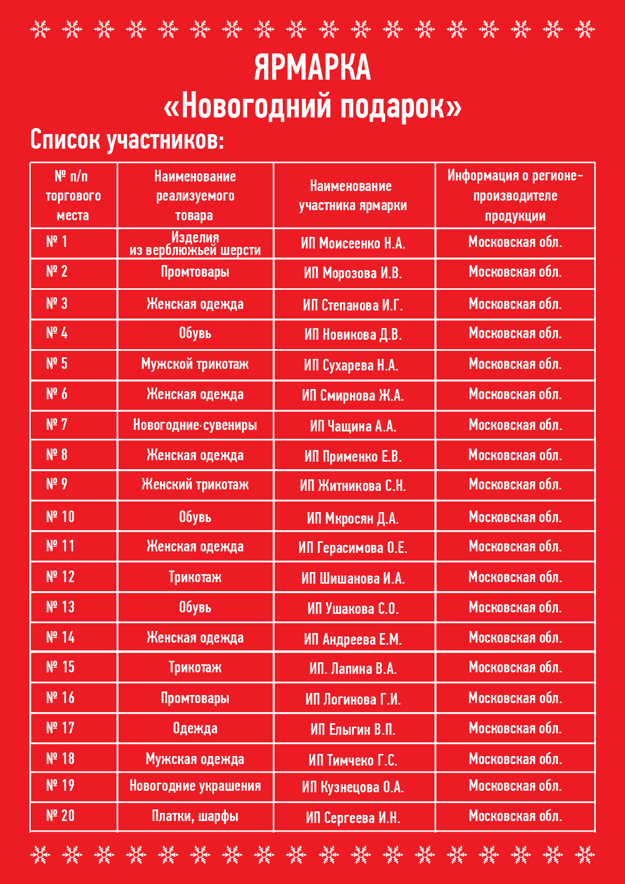 Список участников ярмарки 2025
