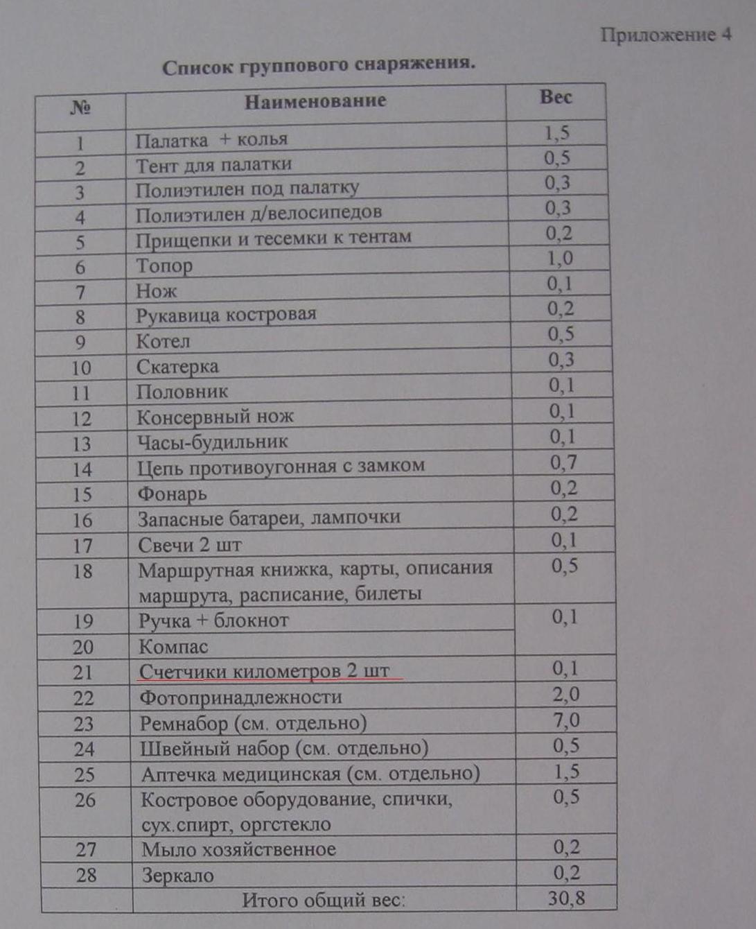 Список в поход таблица 109 фото