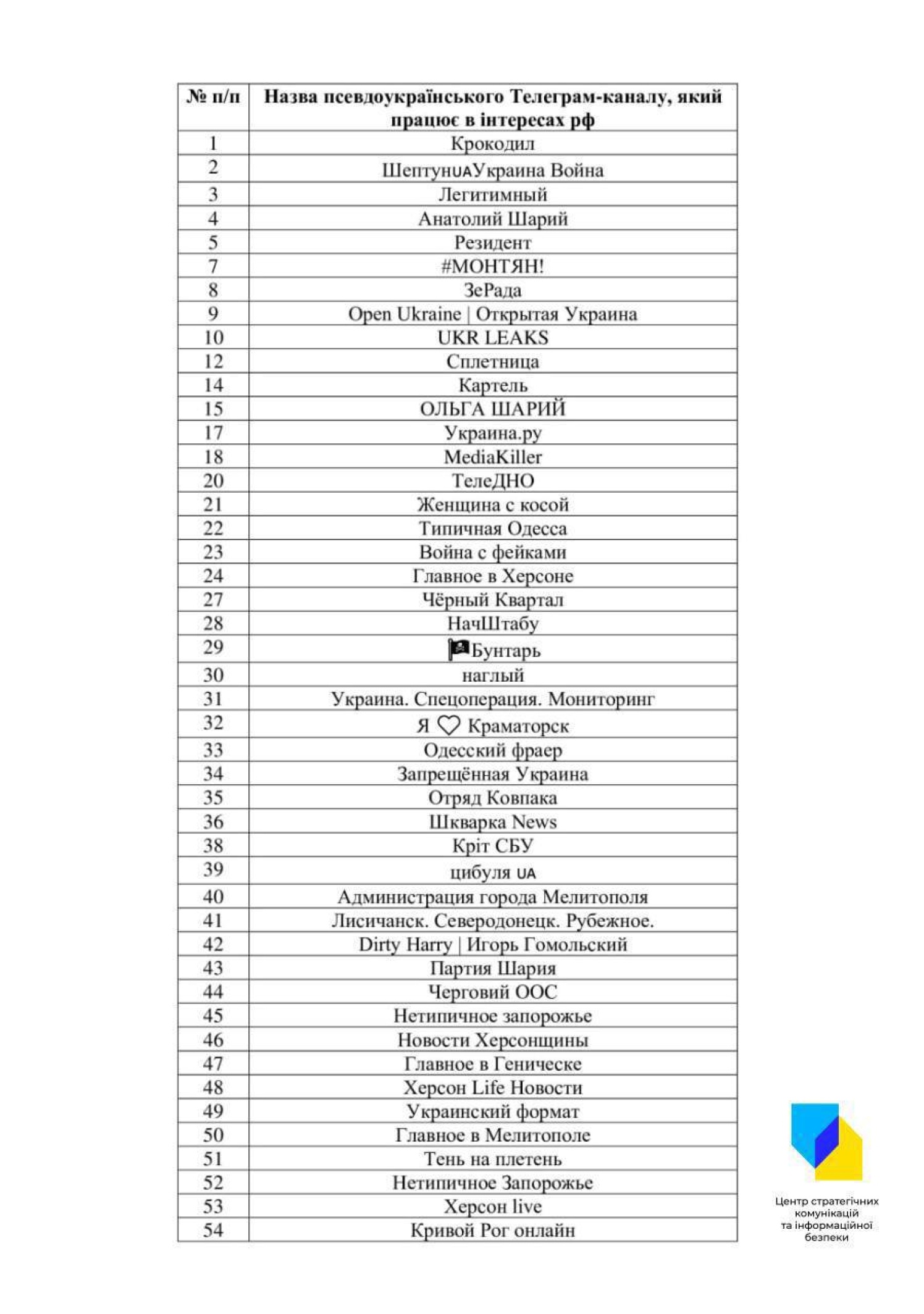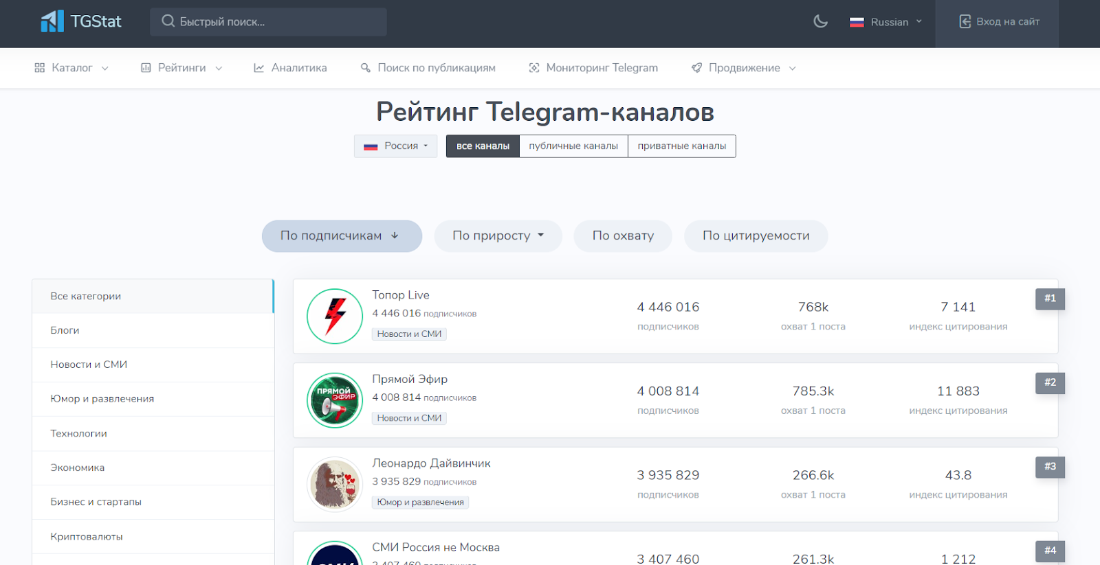 Список всех телеграмм каналов
