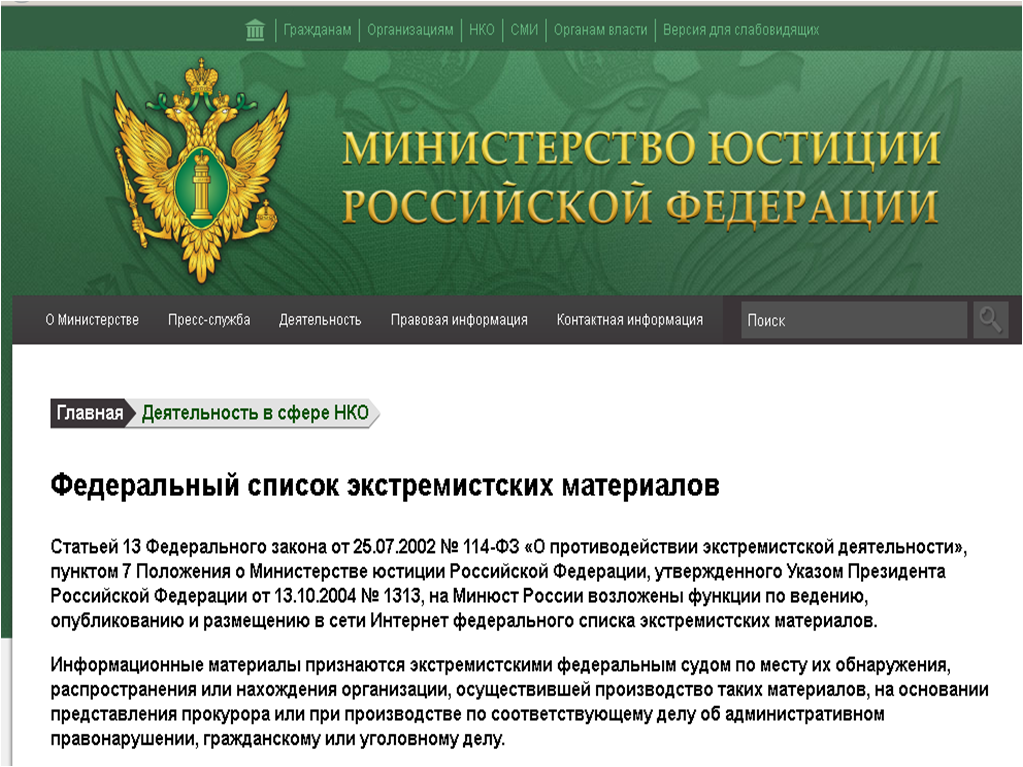 Список запрещенной литературы минюст