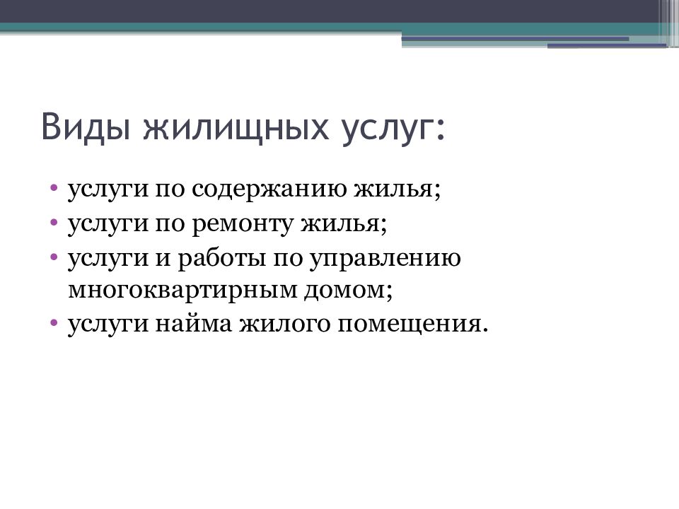 Список жилищных услуг