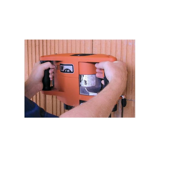 Штрободел Spit F40 с регулируемой шириной и глубиной штробы, защитой от перенапряжения и обесточивания сети, пыленепроницаемым корпусом. Двухскоростной для оптимального вращения в разных типах материалов. Допустима работа в рыхлых материалах, таких как кирпич. Ширина штробы от 18 до 35 мм, глубина штробы 40 мм, мощность 1050 Вт, кабель длиной 4 м.