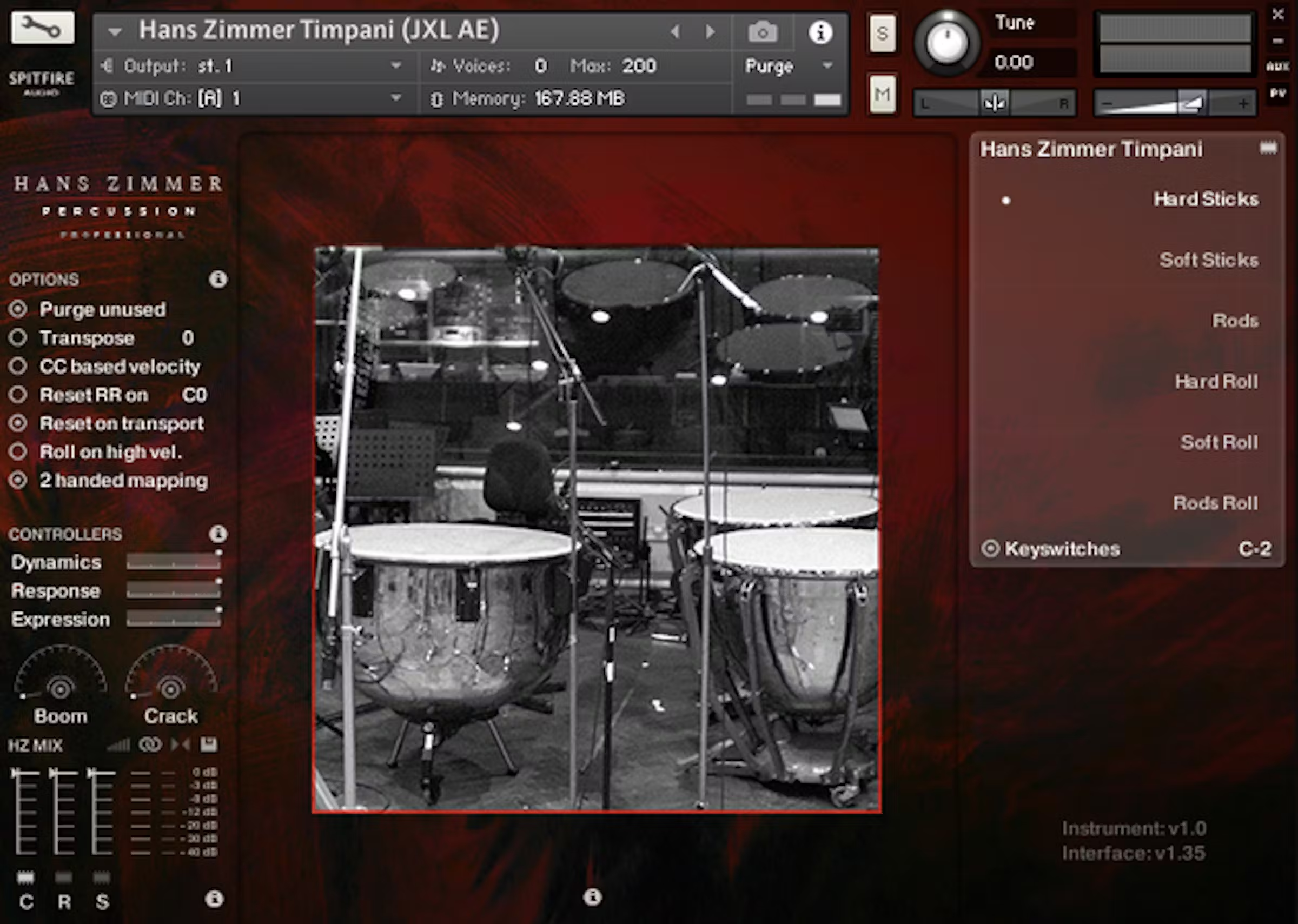 Созданный в тесном сотрудничестве с Хансом Циммером и его командой инженеров, музыкантов и техников, удостоенных премии Грэмми, мы представляем экспертный, авторизованный взгляд Ханса Циммера на кинематографическую перкуссию. Здесь не подражание или синтез его подхода, а воссоздание; та же студия мирового класса, музыканты, инструменты, сигнальная цепь и инженеры, за каждой деталью которых следит сам Ханс с тем же вниманием к деталям и совершенству, в сочетании с новаторской технологией Spitfire, разработанной для того, чтобы предложить вам максимальную творческую настройку.