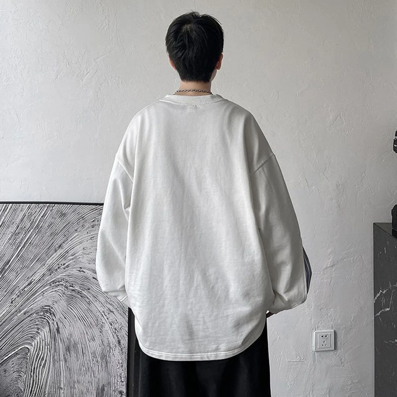 «Spliced Fake Two Piece Long Sleeve Men O Neck Sweatshirt Fall Striped Print Black White Hip Hop Punk Oversized T Shirts Pullover» по лучшей цене на рынке! Всего за 8$ (760рублей)