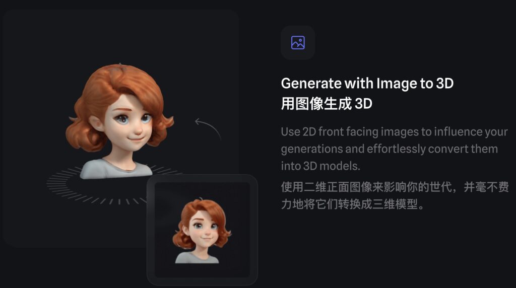 • 可以将2D正面图像转换为3D模型,简化了3D建模的过程,使图像的立体化变得容易。