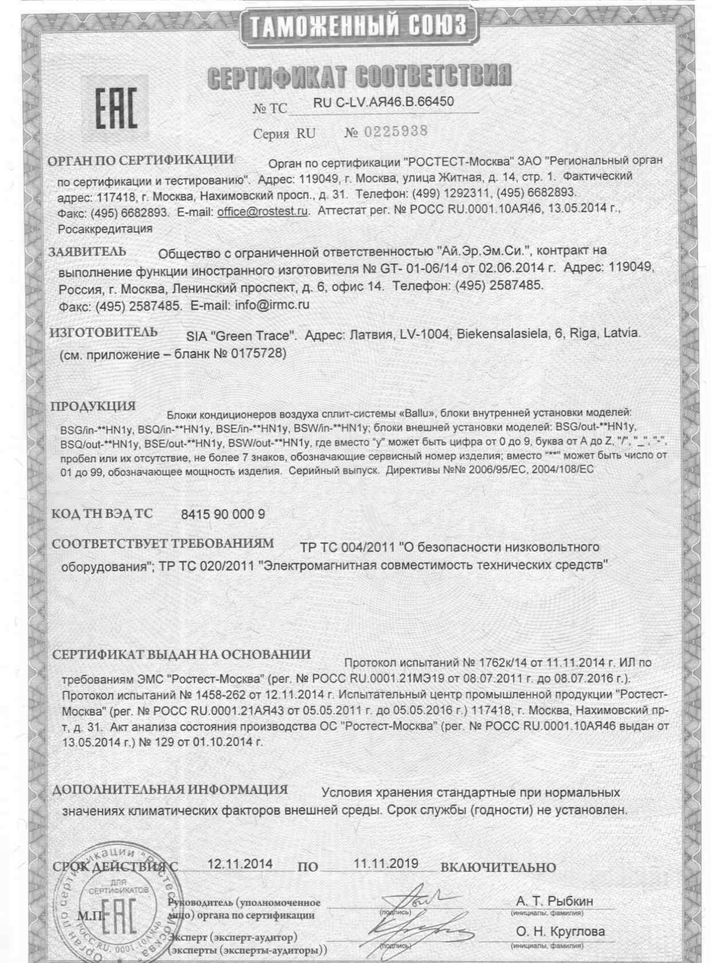 Сплит системы сертификат соответствия