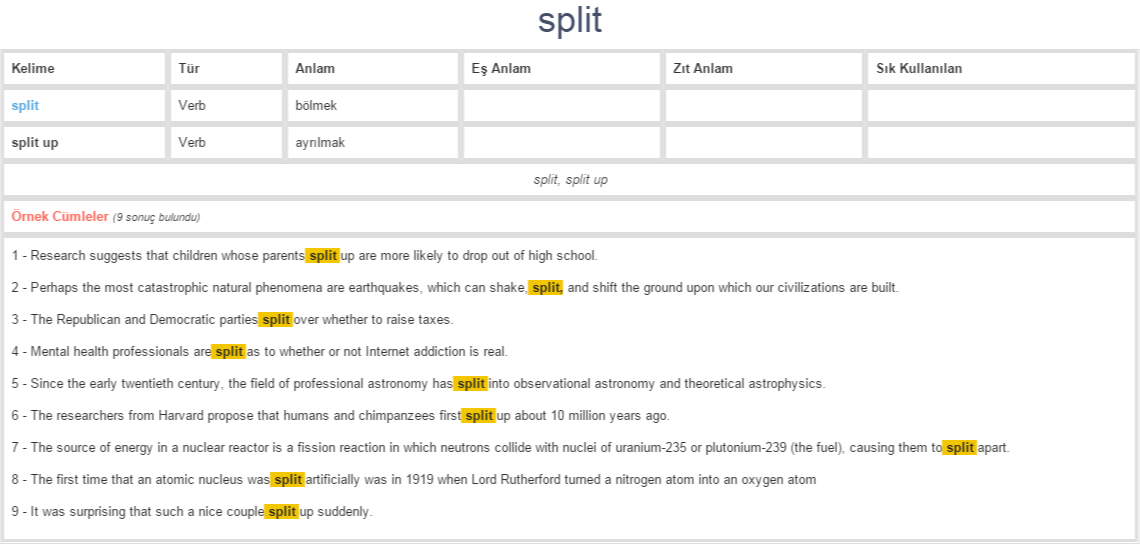 Split verb