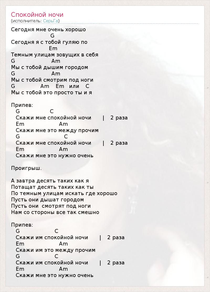 Спокойной ночи текс